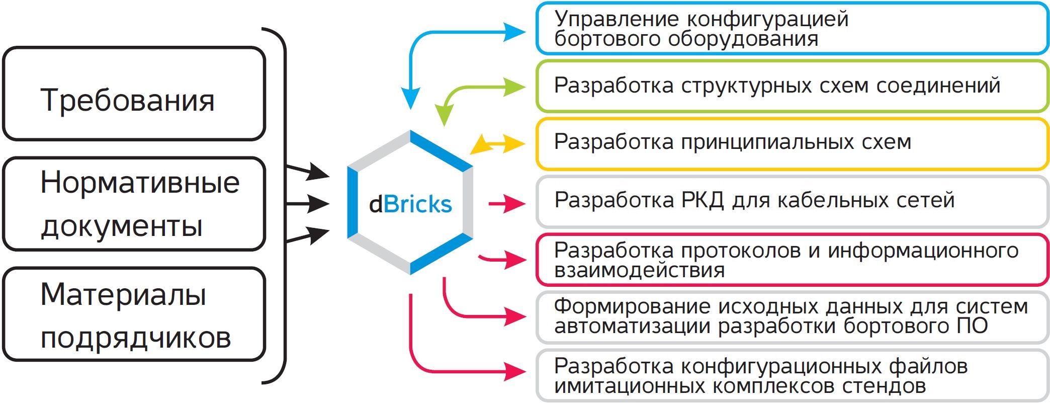 Программный комплекс dBricks и набор дополнений к нему, позволяют разработчикам бортового оборудования создавать модель интерфейсов систем. Такая модель интерфейсов позволяет генерировать готовые документы и создавать модели систем, предназначенные для разработчиков: